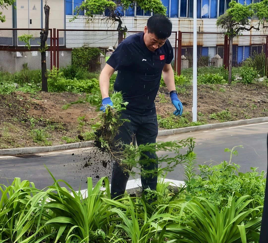 活动当日,教职工们依计划准时集合。简短的任务部署与工具分发后,各党支部迅速行动,以饱满的热情投入劳动。尽管烈日高悬,却丝毫未能削减大家的劳动热情。教职工们以实际行动诠释着吃苦耐劳的精神品格,展现出坚韧不拔的意志风貌。