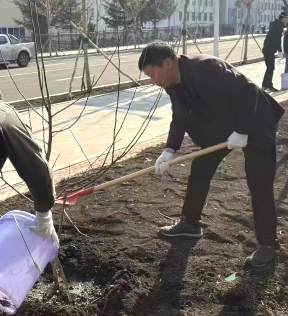 后勤保卫处提前筹备物资与场地。活动中,师生分工协作,先清理杂草焕新环境,再分组植树,挥锹铲土、扶苗浇水,工作人员全程指导养护要点。新栽树苗昂然挺立,为校园添生机。学生们纷纷表示,通过植树活动不仅体验到了劳动的乐趣,更深刻地感受到了保护环境的重要性。